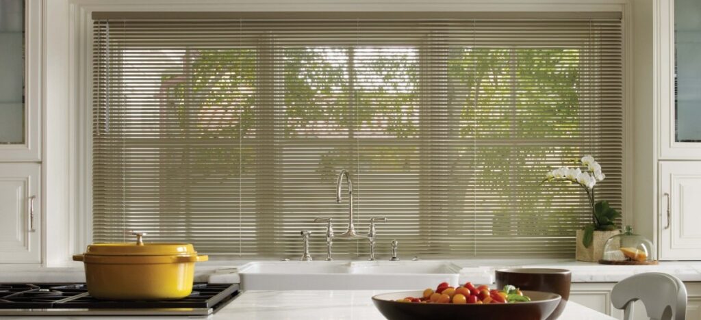 Mini blinds were very popular in office enclosures. Often made out of aluminum, these window treatments are now making a combat. They offer great light control, maxing out privacy, all while being extremely affordable and hard to break. White wooden panels make less noise and offer a sometimes preferred welcoming appeal, aluminum blinds are very hard to break (they bend and you can bend them back) and they are easily and cheaply replaceable.